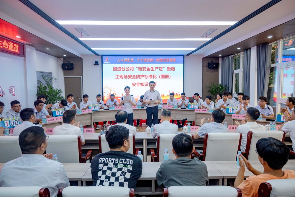 6月29日下午,隧道分公司組織開展“新安全生產(chǎn)法與施工現(xiàn)場安全防護標(biāo)準(zhǔn)化”知識競賽活動。省交通質(zhì)安中心安全生產(chǎn)監(jiān)管處副處長嚴(yán)搖鈴,分公司領(lǐng)導(dǎo)班子、機關(guān)各部門負責(zé)人、所屬項目經(jīng)理及職工代表現(xiàn)場觀賽。
