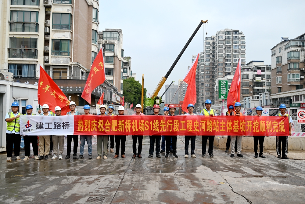 【路橋“競(jìng)”行時(shí)】合肥新橋機(jī)場(chǎng)S1線先行段項(xiàng)目史河路站主體結(jié)構(gòu)基坑開挖完成