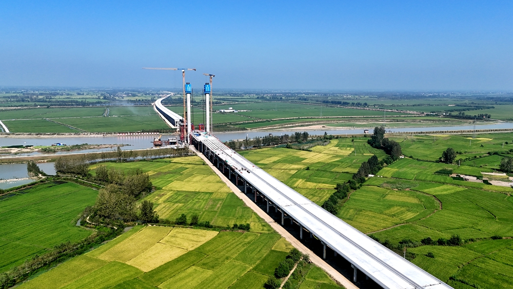江淮運(yùn)河上這座特大橋建設(shè)取得新進(jìn)展