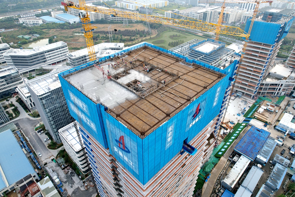 自二期建設(shè)以來,項目集中優(yōu)勢資源高效推進(jìn)主體結(jié)構(gòu)施工。此次完成封頂?shù)腁4#樓單體,建筑面積約37000平方米,地上建筑22層,建筑高度95.3米。建成后將成為集高端企業(yè)總部、星級酒店、辦公樓、商業(yè)會議中心等功能為一體的現(xiàn)代化辦公聚合體。