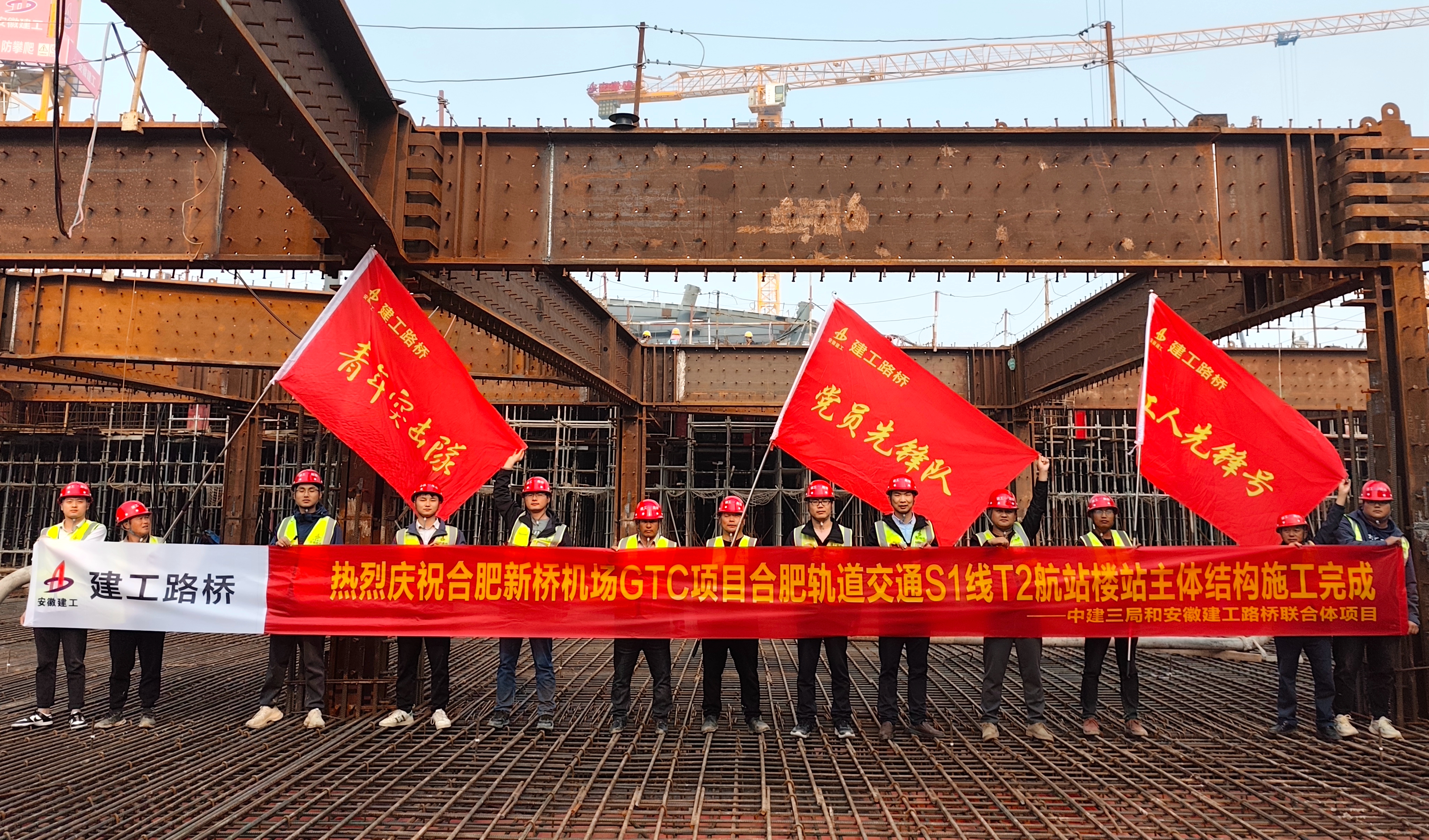 【路橋“競”行時(shí)】合肥新橋國際機(jī)場綜合交通中心項(xiàng)目軌道交通S1號線T2航站樓站結(jié)構(gòu)封頂