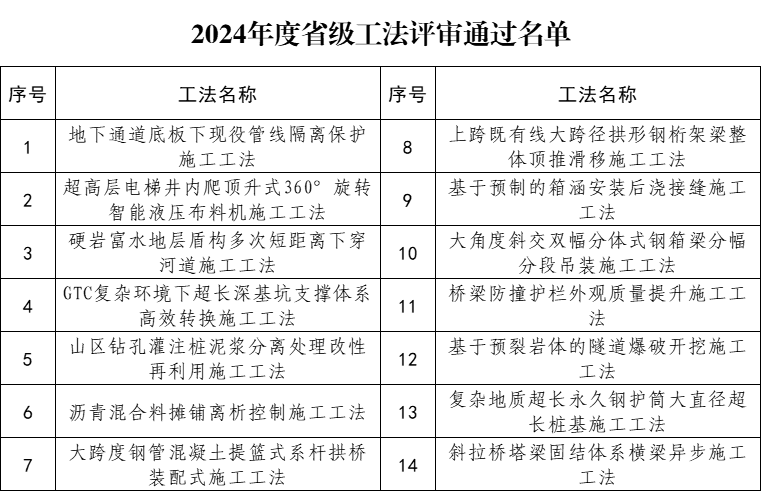 卓越創(chuàng)新 | 公司14項(xiàng)施工工法獲評(píng)省級(jí)工法