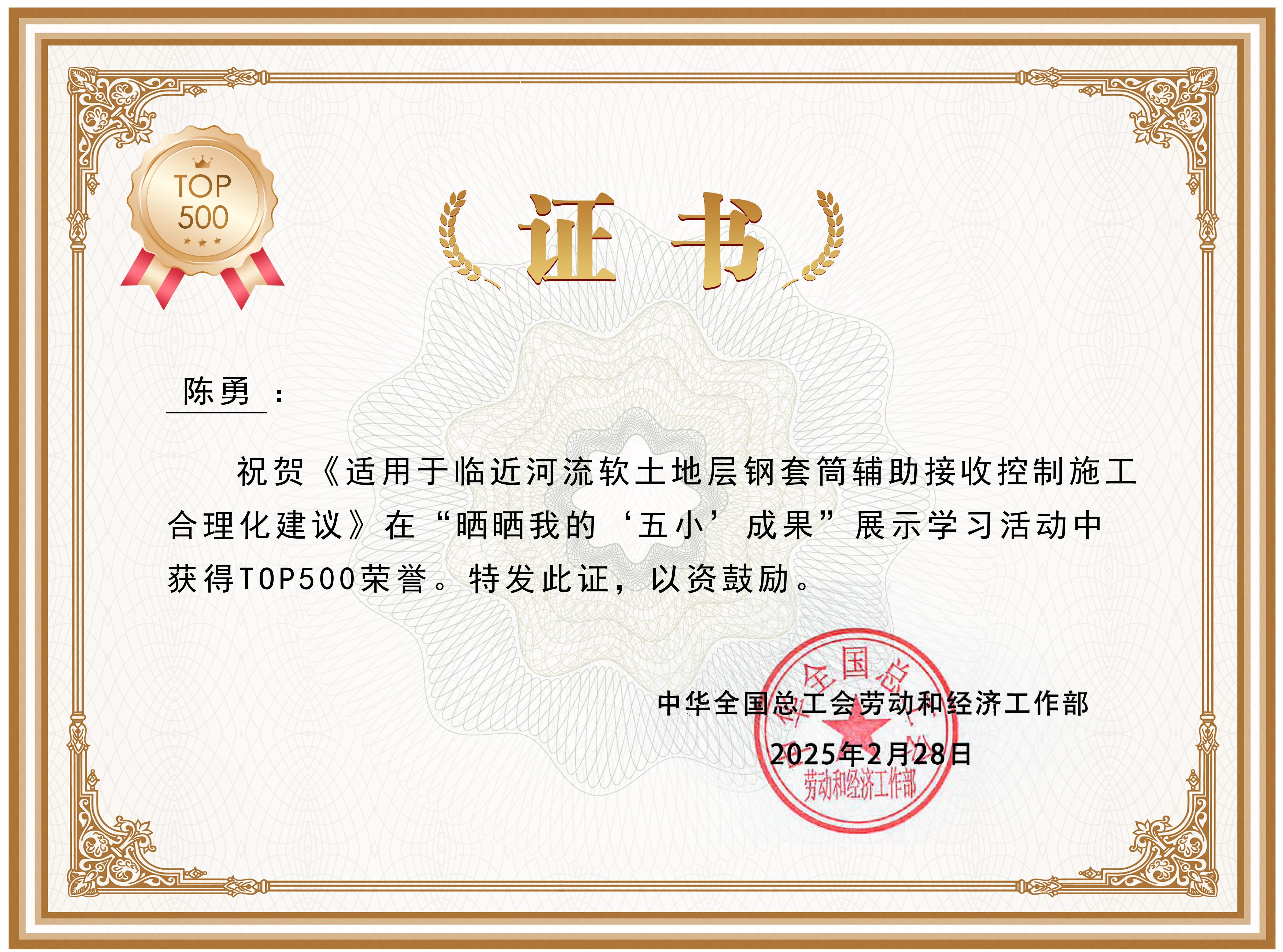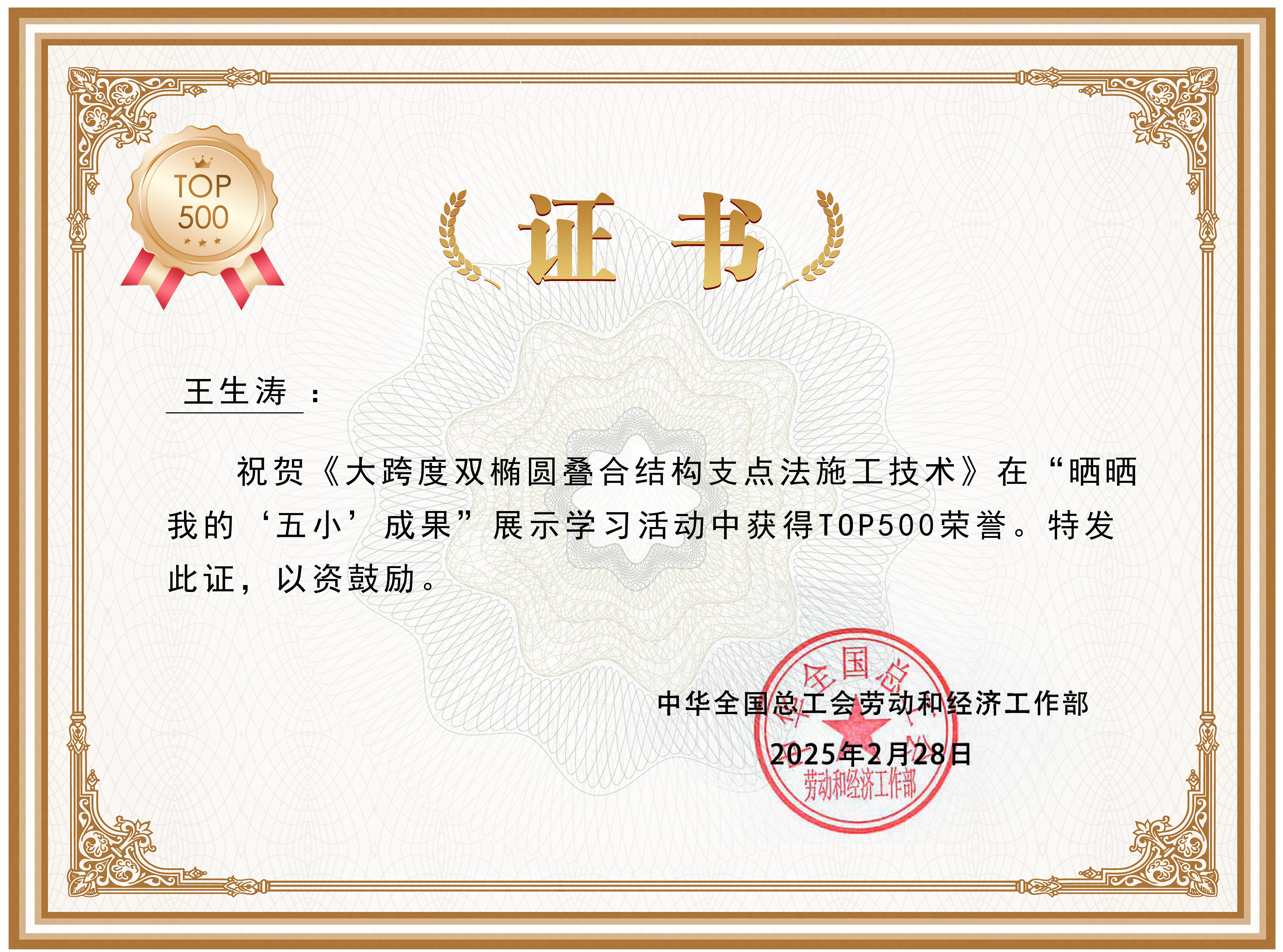 近日,中華全國(guó)總工會(huì)“曬曬我的‘五小’成果”展示學(xué)習(xí)活動(dòng)結(jié)果揭曉,公司選送的《大跨度雙橢圓疊合結(jié)構(gòu)支點(diǎn)法施工技術(shù)》《適用于臨近河流軟土地層鋼套筒輔助接收控制施工合理化建議》經(jīng)過(guò)多輪投票,在5000個(gè)參選成果中脫穎而出,獲得TOP500殊榮,分別位列80名和147名。