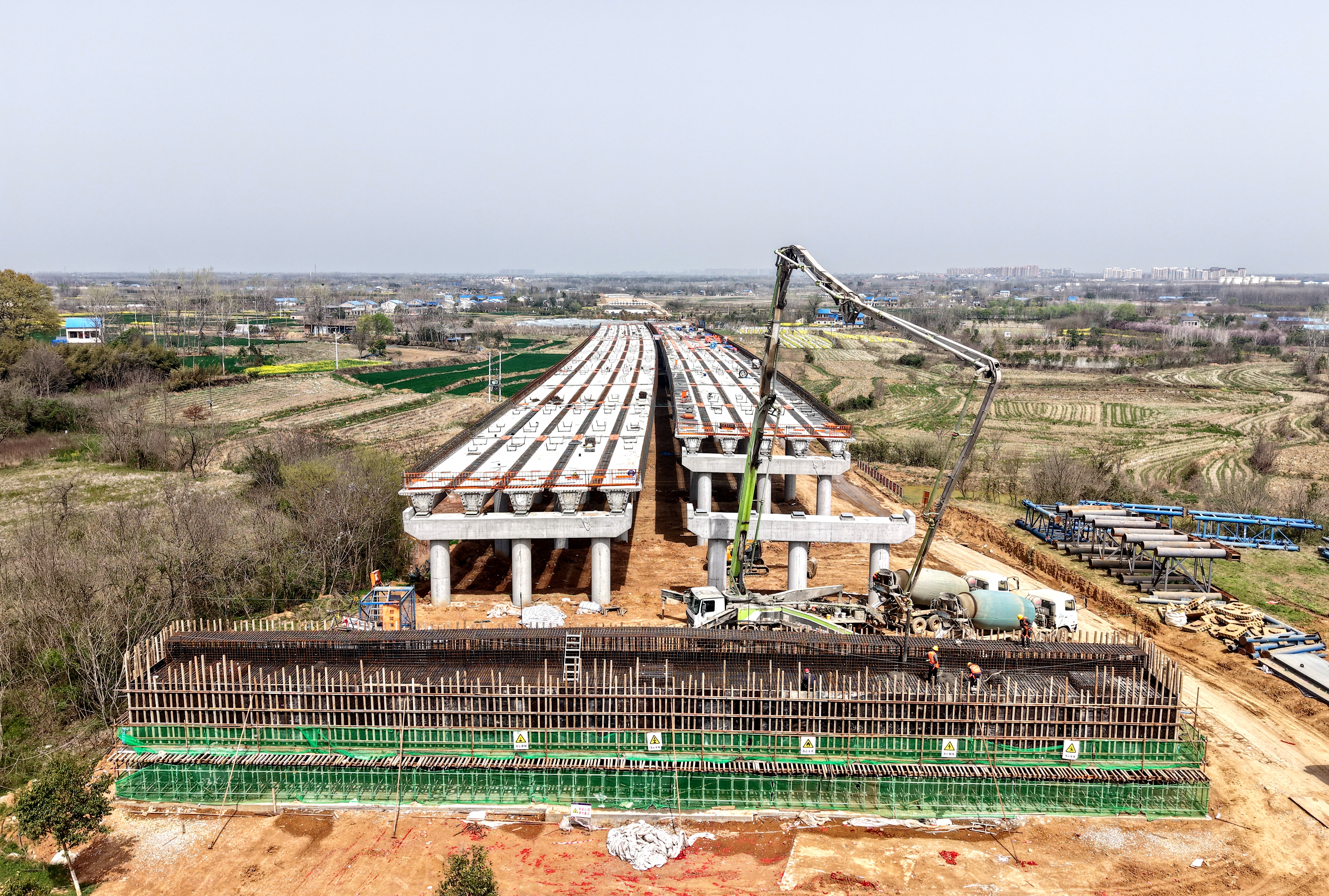 春暉大干正當時 | 淮桐高速合肥段路基2標淠河總干渠大橋主橋首座蓋梁澆筑完成