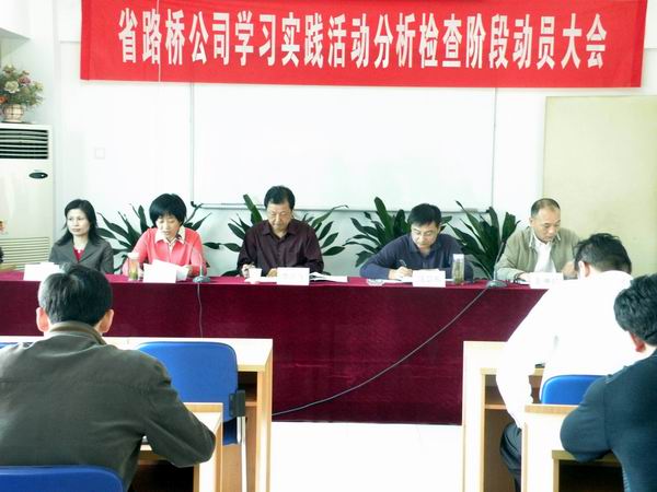 會(huì)上,陳書(shū)記在動(dòng)員講話(huà)里首先全面回顧總結(jié)了學(xué)習(xí)實(shí)踐活動(dòng)第一階段的情況。陳書(shū)記從四個(gè)方面總結(jié)了第一階段的學(xué)習(xí)調(diào)研情況:一、認(rèn)真籌備,積極動(dòng)員。公司黨委迅速行動(dòng),及時(shí)召開(kāi)了黨委會(huì)議,成立了領(lǐng)導(dǎo)小組及其辦公室,研究制定了《安徽省路橋公司開(kāi)展深入學(xué)習(xí)實(shí)踐科學(xué)發(fā)展觀(guān)活動(dòng)實(shí)施方案》等指導(dǎo)性文件,并于3月24日上午,召開(kāi)了學(xué)習(xí)實(shí)踐科學(xué)發(fā)展觀(guān)活動(dòng)動(dòng)員大會(huì)。二、創(chuàng)新方式、強(qiáng)化學(xué)習(xí)。學(xué)習(xí)實(shí)踐活動(dòng)動(dòng)員大會(huì)后,公司學(xué)習(xí)實(shí)踐活動(dòng)領(lǐng)導(dǎo)小組迅速組織實(shí)施第一階段的學(xué)習(xí)實(shí)踐活動(dòng)。一是組織所屬各支部書(shū)記就如何組織開(kāi)展學(xué)習(xí)實(shí)踐科學(xué)發(fā)展觀(guān)活動(dòng)進(jìn)行培訓(xùn);二是以求真務(wù)實(shí)的作風(fēng)推動(dòng)學(xué)習(xí)實(shí)踐活動(dòng)深入開(kāi)展,及時(shí)在網(wǎng)上開(kāi)辟了學(xué)習(xí)實(shí)踐科學(xué)發(fā)展觀(guān)專(zhuān)欄,并利用公司內(nèi)刊《路橋信息》廣為宣傳,為實(shí)踐活動(dòng)營(yíng)造良好的輿論氛圍;三是將《科學(xué)發(fā)展觀(guān)重要論述摘編》、《毛澤東、鄧小平、 江澤民、論科學(xué)發(fā)展》發(fā)至每位黨員手上;四是強(qiáng)化學(xué)習(xí),堅(jiān)持學(xué)習(xí)規(guī)定內(nèi)容與自選內(nèi)容相結(jié)合、集中學(xué)習(xí)與自學(xué)相結(jié)合、學(xué)習(xí)理論與指導(dǎo)實(shí)踐相結(jié)合,正確處理工學(xué)矛盾,創(chuàng)新學(xué)習(xí)方式,確保學(xué)習(xí)質(zhì)量。三、深入調(diào)研、解放思想。公司黨委把開(kāi)展調(diào)研作為掌握實(shí)情、發(fā)現(xiàn)問(wèn)題、破解難題的重要基礎(chǔ),把解放思想大討論作為對(duì)學(xué)習(xí)成果的檢驗(yàn)。一是集思廣益,確定調(diào)研課題,領(lǐng)導(dǎo)班子在廣泛征求意見(jiàn)的基礎(chǔ)上,確定了9個(gè)調(diào)研課題和課題組成員;二是深入基層,廣泛調(diào)研,公司領(lǐng)導(dǎo)班子成員深入到聯(lián)系點(diǎn)開(kāi)展調(diào)研,問(wèn)計(jì)于基層,問(wèn)計(jì)于員工,廣泛聽(tīng)取員工對(duì)公司科學(xué)發(fā)展的意見(jiàn)和建議,進(jìn)一步摸清了問(wèn)題,理清了思路。四、突出實(shí)踐特色,聯(lián)系實(shí)際到位。在抓好學(xué)習(xí)的同時(shí),堅(jiān)持理論聯(lián)系實(shí)踐,把學(xué)習(xí)實(shí)踐活動(dòng)和生產(chǎn)經(jīng)營(yíng)緊密結(jié)合起來(lái)。公司領(lǐng)導(dǎo)班子分別就外協(xié)隊(duì)伍的管理與控制、人力資源管理、項(xiàng)目質(zhì)量管理、市政市場(chǎng)戰(zhàn)略定位、項(xiàng)目財(cái)務(wù)管理、經(jīng)營(yíng)管理等方面的問(wèn)題進(jìn)行了深入調(diào)研,并提出了可行的解決方案,形成了有質(zhì)量的調(diào)研報(bào)告。各支部、各項(xiàng)目黨小組都始終把學(xué)習(xí)實(shí)踐活動(dòng)同生產(chǎn)經(jīng)營(yíng)和企業(yè)管理緊密聯(lián)系起來(lái),做到相互促進(jìn)。陳書(shū)記指出通過(guò)學(xué)習(xí)實(shí)踐活動(dòng)的開(kāi)展,公司領(lǐng)導(dǎo)謀劃科學(xué)發(fā)展的決心、信心都更加堅(jiān)定,公司上下的凝聚力、干勁大大增強(qiáng),生產(chǎn)經(jīng)營(yíng)形勢(shì)良好。截至到目前,公司承攬工程6.88億,同比增長(zhǎng)26.7%。同時(shí)陳書(shū)記還指出了第一階段學(xué)習(xí)實(shí)踐活動(dòng)中存在的一些問(wèn)題。接著陳書(shū)記對(duì)如何做好分析檢查階段的工作提了兩點(diǎn)意見(jiàn)。一、要認(rèn)真抓好三個(gè)環(huán)節(jié)。陳書(shū)記對(duì)召開(kāi)領(lǐng)導(dǎo)班子專(zhuān)題民主生活會(huì)、形成領(lǐng)導(dǎo)班子分析檢查報(bào)告、組織群眾評(píng)議三個(gè)環(huán)節(jié)提出了具體要求;二、要始終堅(jiān)持六個(gè)貫穿始終,一要把活動(dòng)主題貫穿始終,二要把理論學(xué)習(xí)貫穿始終,三要把實(shí)踐特色貫穿始終,四要把邊查邊改貫穿始終,五要把嚴(yán)格要求貫穿始終,六要把“兩不誤、兩促進(jìn)”貫穿始終。