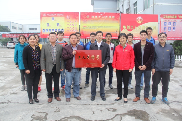10月29日,安徽建工集團(tuán)工會(huì)主席徐曉光在公司黨委書記陳光磊、工會(huì)主席胡運(yùn)春的陪同下,來到公司承建的寧千高速路面01標(biāo)項(xiàng)目部,對(duì)該項(xiàng)目“工人先鋒號(hào)”創(chuàng)建工作進(jìn)行驗(yàn)收并授牌。