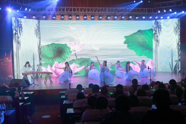 文藝匯演融聲樂、器樂、舞蹈、相聲、小品、朗誦、情景劇等多種藝術(shù)形式為一體,青春時尚元素與傳統(tǒng)元素完美結(jié)合,多角度、多視點營造出昂揚向上、全員同樂的節(jié)日氣氛。