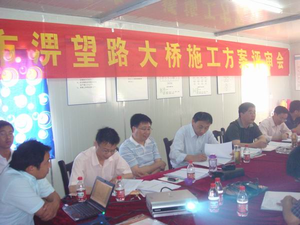 6月1日,六安市淠望路大橋索塔下橫梁、索塔、主橋邊跨及引橋支架現(xiàn)澆施工方案評(píng)審會(huì)在項(xiàng)目部會(huì)議室召開。會(huì)議由公司的總工程師彭申凱主持,特邀了安徽省公路局總工朱新實(shí)、安徽省交通規(guī)劃設(shè)計(jì)研究院橋梁分院院長(zhǎng)王勝斌、副院長(zhǎng)席進(jìn)、合肥工業(yè)大學(xué)教授方詩圣、安徽省交通職業(yè)技術(shù)學(xué)院土木系主任王豐勝等知名橋梁專家。六安市建委、質(zhì)監(jiān)站、安檢站、淠望路大橋監(jiān)理部、監(jiān)控等單位相關(guān)代表也參加了會(huì)議。