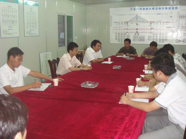 針對北岸引橋箱梁砼澆筑后,對成型構(gòu)件出現(xiàn)的問題,由全體技術(shù)人員先找原因討論解決辦法,隨后,崔總對所提出問題逐一進(jìn)行了原因分析,提出了解決的辦法。大家感到這種有針對性地培訓(xùn),接受的快,收效很大。最后,項(xiàng)目經(jīng)理江仲明要求在當(dāng)前工程沖刺關(guān)鍵時刻,所有技術(shù)人員要切實(shí)增強(qiáng)質(zhì)量意識,強(qiáng)化質(zhì)量工作責(zé)任,加強(qiáng)質(zhì)量考核工作,并強(qiáng)調(diào)各部門、各作業(yè)隊(duì)要對檢查出的質(zhì)量問題嚴(yán)肅處理,認(rèn)真落實(shí)整改。