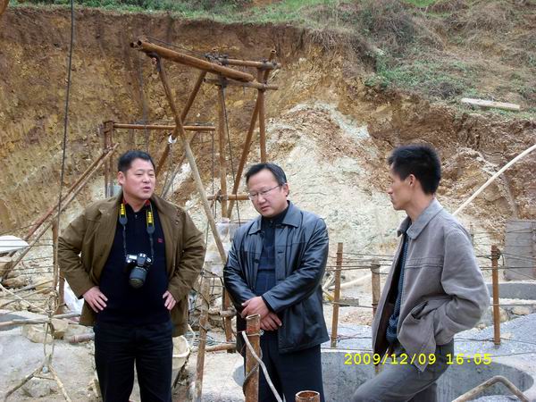 9日下午,孫總陸總一行稍做休息之后,便在我部項目經(jīng)理劉曉晗、財務(wù)經(jīng)理李強等人員的陪同下,對我部的巖子腳大橋4號、5號主橋墩挖孔樁處、雨壩隧道、拌和站料場、標尾路基挖土方處做了認真的檢查。孫總對我部開工以來的進展速度和取得的成績給予肯定。當前我項目4號墩挖孔樁16根樁基已完成14根,剩余2根也即將成孔;5號墩挖孔樁也完成一半以上;隧道便道的修建速度和路基填方速度都較快。孫總也就我部的不足之處提出要求,要求我部應(yīng)更加主動積極地解決地方問題,加快橋梁上部施工隊伍的選擇,保證橋梁施工的連續(xù)性。在施工過程中要確保施工安全,特別是隧道進洞及石方爆破,要有專項安全方案,在確保施工質(zhì)量的同時要做好文明施工,展示路橋風(fēng)采。