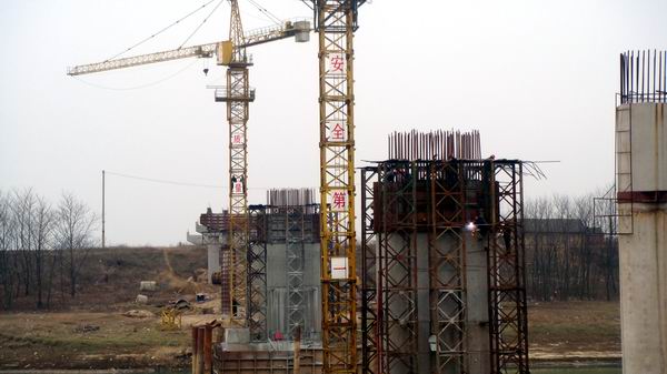 孫局長(zhǎng)一行在項(xiàng)目經(jīng)理梅占勝同志的陪同下,一起走上大堤視察了施工現(xiàn)場(chǎng),并詢問(wèn)了大橋施工的基本情況。梅占勝一一作了匯報(bào),孫局長(zhǎng)聽完匯報(bào)后,對(duì)項(xiàng)目上為了節(jié)后上部結(jié)構(gòu)的正常施工而搶抓下部工程施工的計(jì)劃比較滿意,同時(shí)指出,三荻路項(xiàng)目市里今年降給予更大的關(guān)注,你們要抓緊施工,要注意質(zhì)量,也要重視安全,尤其是上部施工中的安全。