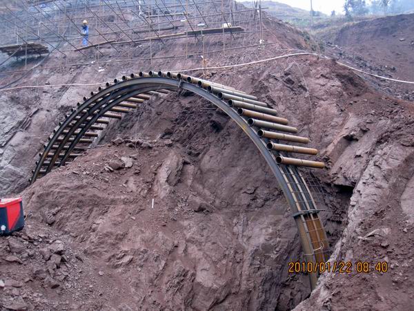 惡劣的自然環(huán)境和復(fù)雜的地方問(wèn)題,使雨壩隧道進(jìn)洞前的籌備工作異常艱辛。項(xiàng)目經(jīng)理劉曉晗和總工胡學(xué)祥數(shù)次趕赴業(yè)主等單位,反映問(wèn)題和請(qǐng)求解決問(wèn)題,并請(qǐng)來(lái)各級(jí)安全監(jiān)理到施工現(xiàn)場(chǎng)協(xié)商施工隊(duì)住房場(chǎng)地的選擇點(diǎn)。地方辦負(fù)責(zé)人邵子俊同志幾乎整日奔波于縣指揮部、鄉(xiāng)政府、派出所、供電所之間……。功夫不負(fù)有心人,在大家多方面的努力下,最終住房場(chǎng)地通過(guò)了監(jiān)理安全的驗(yàn)收,其他標(biāo)段因村民堵路導(dǎo)致的交通問(wèn)題、拆遷問(wèn)題、搶挖煤?jiǎn)栴}得到解決,施工用電也通暢無(wú)阻。與此同時(shí),施工隊(duì)方面完成所有機(jī)器設(shè)備的安裝和調(diào)試工作,前期所需鋼材均已全部進(jìn)場(chǎng),各班組人員基本到位?,F(xiàn)已完成左洞邊仰坡開(kāi)挖和防護(hù),套拱施工、管棚施工正加班加點(diǎn)進(jìn)行施工,右洞也已進(jìn)入套拱施工階段;所有施工工序正有條不紊的進(jìn)行。至此,雨壩隧道進(jìn)洞前工作全部完成,同時(shí)也宣告了安徽路橋水盤(pán)項(xiàng)目的隧道工程取得了階段性的勝利。