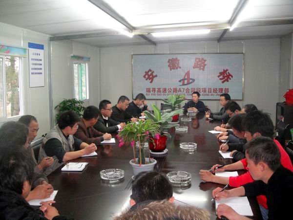 會上,劉大雷經(jīng)理向全體員工傳達了五屆二次會議的工作內(nèi)容要點,并帶領(lǐng)大家重點學習了公司總經(jīng)理汪衛(wèi)東關(guān)于《夯實管理基礎,拓展發(fā)展空間,為推動安徽路橋快速發(fā)展而努力奮進》的工作報告。項目部成員結(jié)合A7標施工實際,就汪總工作報告中闡述的2010年奮斗目標和工作思路等內(nèi)容,進行了深入探討。瑞尋高速工程作為我公司進駐江西市場戰(zhàn)略中第一個中標項目,A7標的工作目標不僅僅是完成這一具體工程,更深層次的是要打造品牌質(zhì)量,樹立起公司形象,進而開拓江西市場。在具體思路上,要以“和諧、奮進、創(chuàng)新、共贏”為宗旨,制定好周、月以及季度的施工計劃,強化項目管理,提高經(jīng)濟效益。同時,劉經(jīng)理提出工程的季度產(chǎn)值目標和年度產(chǎn)值目標,希望各部門、各工區(qū)相互配合,共同完成每個階段的工程任務。
