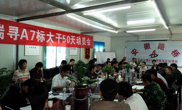 會(huì)議首先下達(dá)了大干50天的施工任務(wù)目標(biāo),并公布了相應(yīng)獎(jiǎng)懲措施,要求各施工班組務(wù)必按質(zhì)按時(shí)完成施工任務(wù)。隨后,RA3駐地辦駐地工程師吳勝和A7監(jiān)理組組長(zhǎng)萬(wàn)軍分別對(duì)大干50天作出指示。最后,項(xiàng)目經(jīng)理劉大雷從工程進(jìn)度、質(zhì)量和安全等方面進(jìn)行了總結(jié)并提出要求,強(qiáng)調(diào)了施工過程中安全、質(zhì)量、進(jìn)度的重要性,三者要同時(shí)抓,要加強(qiáng)環(huán)保與文明施工,建立一個(gè)和諧的施工環(huán)境。