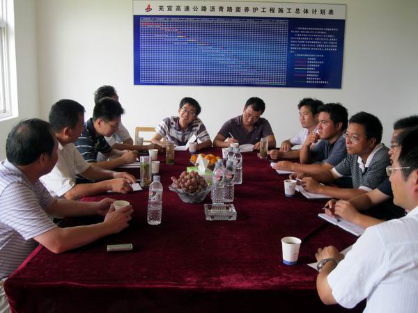 結束了對前后場的現(xiàn)場視察后,曹部長一行在項目部會議室召開了工作座談會議。會上交投集團養(yǎng)護部曹部長、界阜蚌改建辦張主任、蕪宣管理處養(yǎng)護部張部長、駐地辦劉組長作為代表分別就目前施工中質量控制的要點以及施工工序中需注意的幾個方面做了發(fā)言,并就此進行了深入的交流與探討。