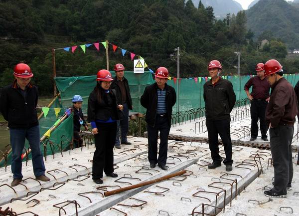 黃主席一行在項(xiàng)目經(jīng)理王遠(yuǎn)勝、項(xiàng)目黨支部書記邵建新、總工吳昊的陪同下深入各工區(qū)、施工一線了解我部一工區(qū)梁板預(yù)制、鋼筋加工和橋梁架設(shè)情況,二工區(qū)立柱施工情況和三工區(qū)梁場恢復(fù)生產(chǎn)的情況,并聽取項(xiàng)目經(jīng)理王遠(yuǎn)勝關(guān)于我部水毀及災(zāi)后恢復(fù)生產(chǎn)的工作匯報(bào)。
