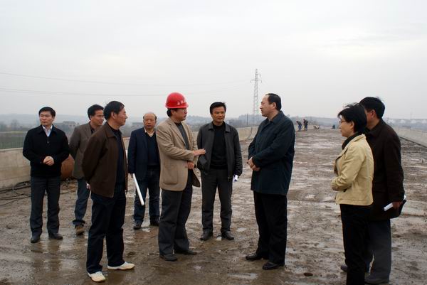 3月19日上午9:20,蕪湖市政府副市長朱誠在市交通局、公路局、蕪湖縣政府等相關(guān)領(lǐng)導(dǎo)陪同下,來我青弋江大橋視察指導(dǎo)工作。朱市長一行下車后步行上橋,看到我大橋護欄、砼橋面已全部完成后,非常高興。在聽了基本情況匯報后,他指出:這座橋是這條路的龍頭,希望能早日通車,并對項目部提出要求,4月15日一定要完成瀝青路面及附屬工程,確保簡易通車。