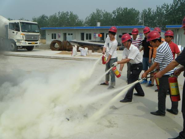 鳳陽縣消防支隊(duì)派出業(yè)務(wù)骨干進(jìn)行培訓(xùn)和現(xiàn)場指導(dǎo)演練,重點(diǎn)對施工現(xiàn)場安全的隱患點(diǎn)做了詳細(xì)分析,對消防滅火器材的種類、型號、使用方法進(jìn)行了講解和現(xiàn)場指導(dǎo)。本次消防演練由技術(shù)指揮組、搶救組組成。參加培訓(xùn)人員在掌握基本常識基礎(chǔ)上對施工現(xiàn)場所配備的干粉滅火器進(jìn)行實(shí)際操作,進(jìn)行滅火演練。