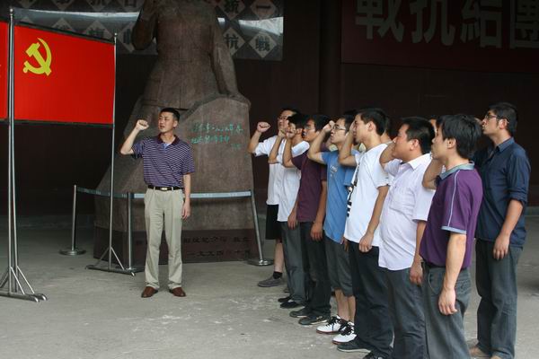 在新四軍舊址大會堂,由李楊書記領(lǐng)誓,宣貍項目全體黨員同志面對黨旗,舉起拳頭,再一次莊嚴(yán)宣誓。通過重溫誓詞,激勵自己牢記誓言,對黨忠誠,永葆先進(jìn)。