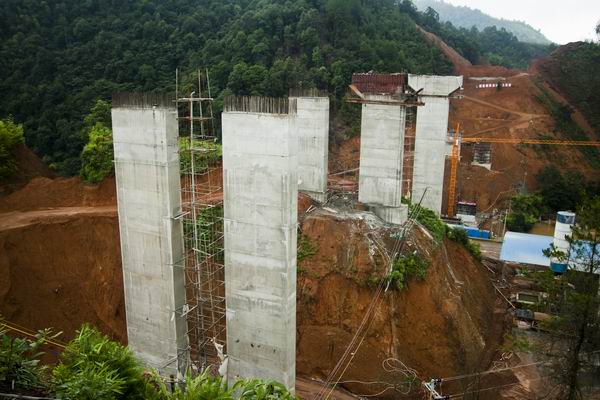 薄壁墩澆筑搶出來了,現(xiàn)在他們的重點又轉(zhuǎn)入到讓他們夜不能寐,茶飯無味,而進度一直滯后的合江口四橋的下部構(gòu)造施工中。