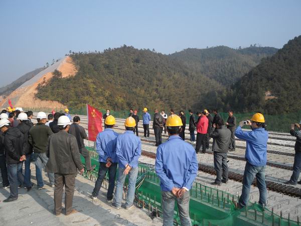 隨后,大廣項(xiàng)目辦在我部會(huì)議室召開(kāi)經(jīng)驗(yàn)交流會(huì)。全上我部項(xiàng)目總工熊祖發(fā)以投影的方式,將橋面系精細(xì)化施工各道施工工序的做法及注意事項(xiàng)等一一展播,生動(dòng)形象的講解令與會(huì)人員印象深刻。各高駐辦及施工單位也就此次觀(guān)摩會(huì)發(fā)表了一些感想。隨后,項(xiàng)目辦總工周軍平作總結(jié)性發(fā)言,周總說(shuō)該橋得到了省質(zhì)檢站的高度認(rèn)可,在肯定了B1標(biāo)項(xiàng)目經(jīng)理部所做出的成績(jī)后,也對(duì)全線(xiàn)參建單位提出要求,希望通過(guò)此次觀(guān)摩,各參建單位能取人之長(zhǎng),補(bǔ)己之短,多交流溝通,多相互學(xué)習(xí),將先進(jìn)的施工工藝學(xué)回去,共同提高施工質(zhì)量。最后,項(xiàng)目經(jīng)理羅權(quán)代表項(xiàng)目部對(duì)到會(huì)的各位領(lǐng)導(dǎo)及同仁表示感謝,并表示將在今后的施工過(guò)程中,繼續(xù)秉持“高標(biāo)準(zhǔn),嚴(yán)要求”的理念,快速、高效完成業(yè)主交付的施工任務(wù)。